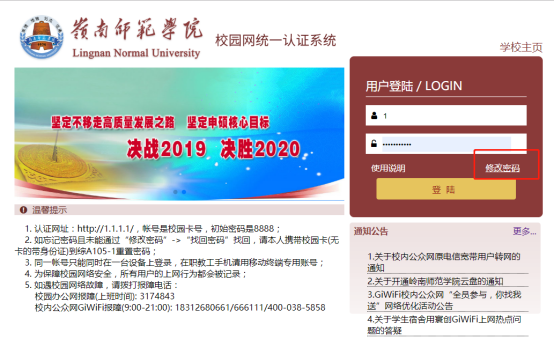 首次登陆校园网络统一认证系统修改默认密码图解.doc