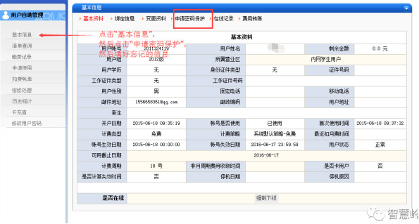 第二步:点击“申请密码保护”(注意:必须填完整“申请密码保护”,才能修改成功密码),如图所示