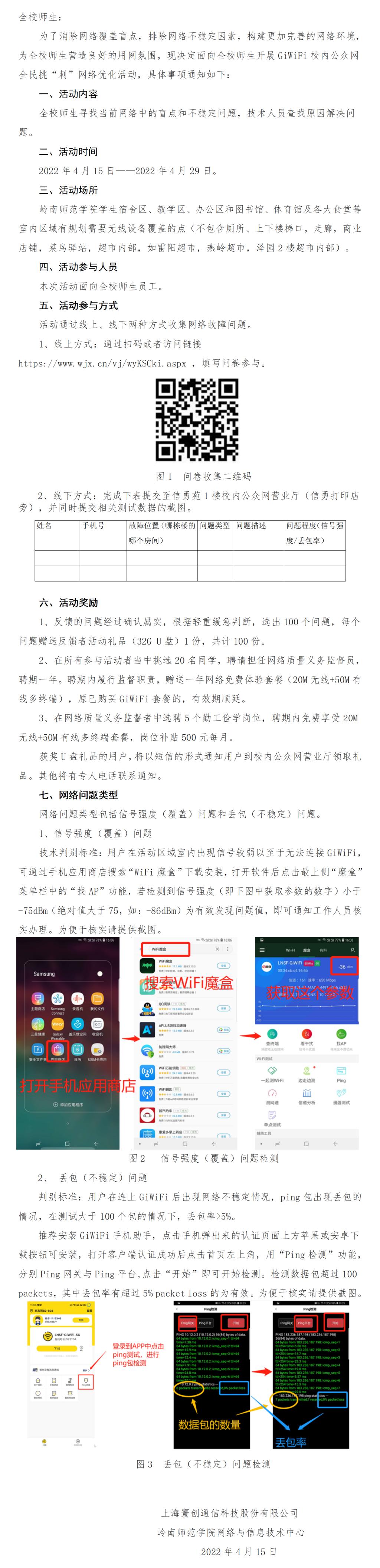 关于开展GiWiFi校内公众网全民挑“刺”网络优化活动的通知