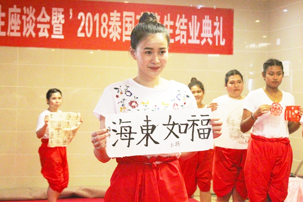 泰国交换生展示书法作品 (林颖铃摄)