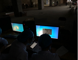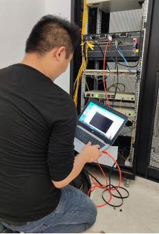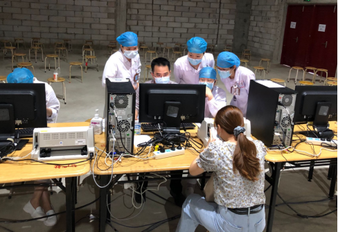 当日下午16:00办公桌椅进场,网信中心调配电脑到位并安装,在接种点尚未正常通电的情况下,技术保障组借助手机电筒打孔穿线布线,接通临时用电安装网络设备、调试交换机参数,为节省时间,技术保障组在施工现场边吃盒饭边商讨优化方案。晚上21:00完成了电脑及网络安装与测通工作,在22:30全面通电后再多次进行网络测试及调试,配置交换机接口、各网络终端设备,设置设备参数,安装防火墙、应用软件,测试调整网速,打印机测试,实现网络系统安全平稳运行,完成了网络抢建攻坚任务。